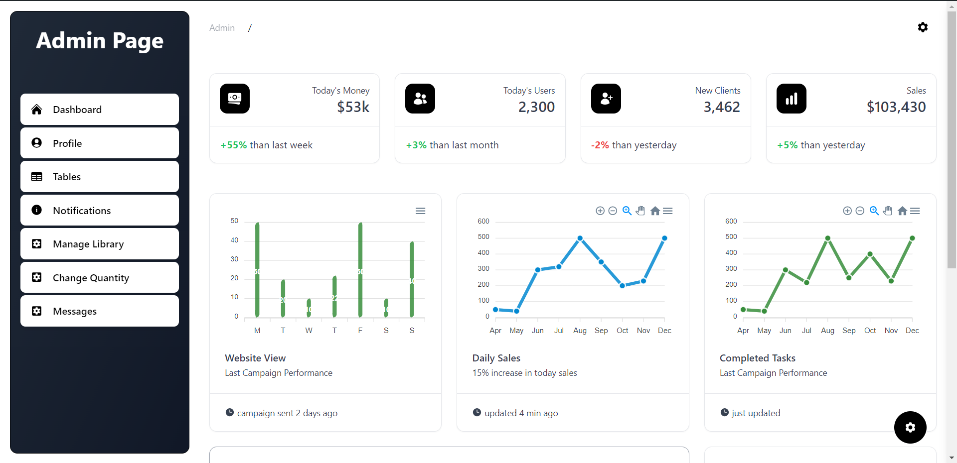 Dashboard: The dashboard provides an overview of the system, including the number of books, the number of shelves, and the number of books currently in stock.
