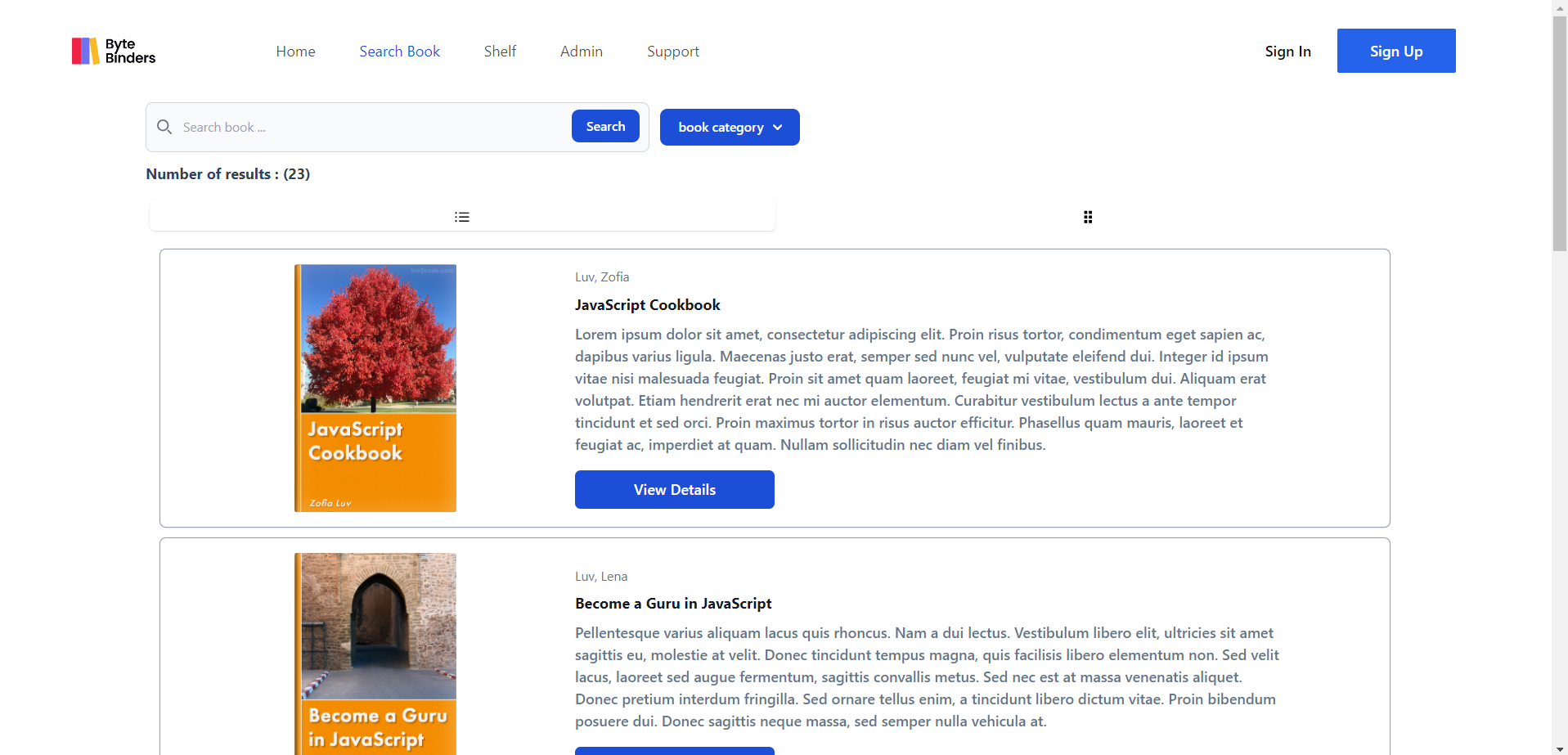 Seach Page: This feature allows users to search for books by title, author, or category.